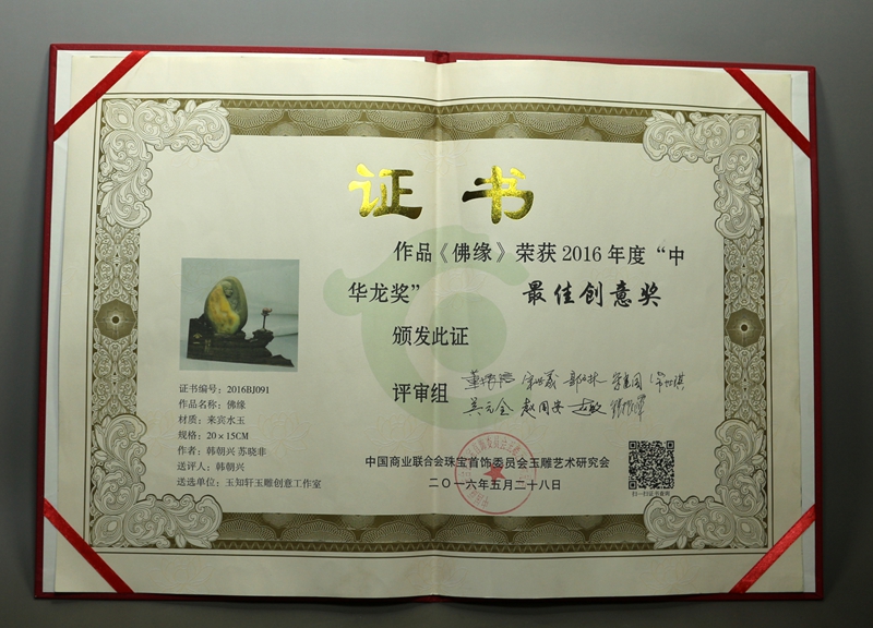 来宾水玉(黄龙玉)《佛缘》中华龙奖“最佳创意奖”